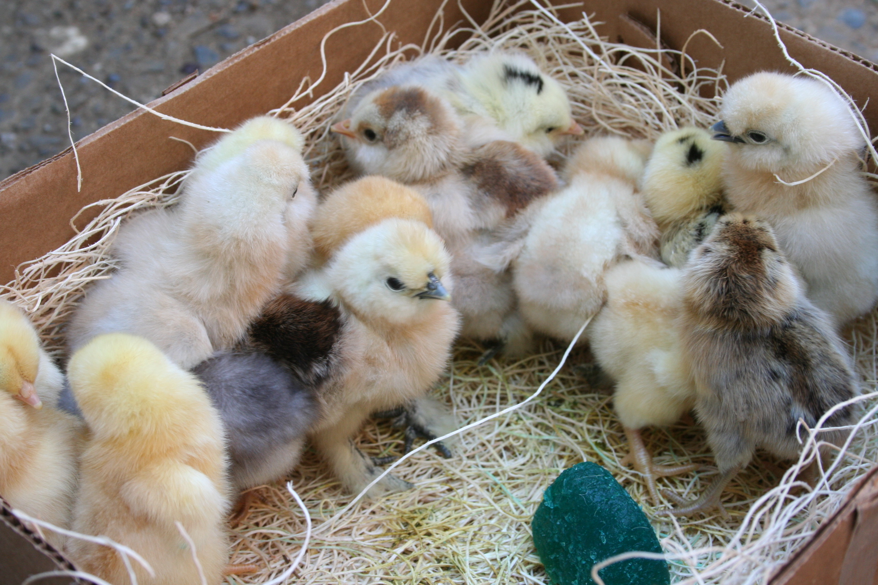They all survived the first night here and the boys LOVE them. All Jackson wants to do is look and hold the chicks.