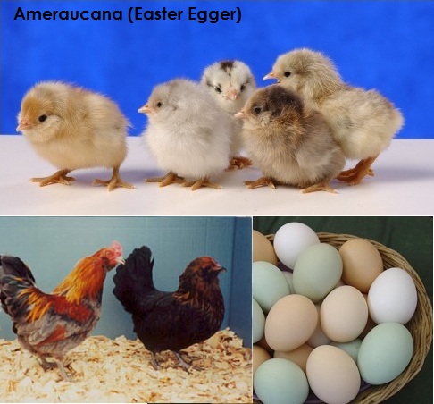 The Ameraucana breed was derived from blue egg laying chickens, but they do not have the breeding problems inherent to Araucanas. In addition, rather than ear tufts, they have muffs and a beard, and are very hardy and sweet.
