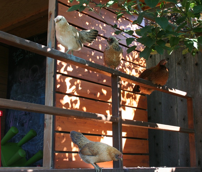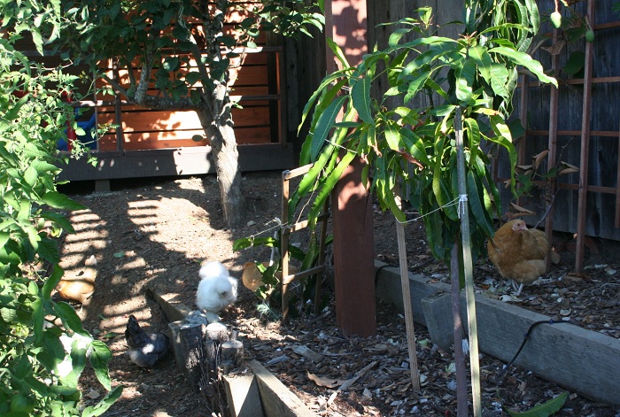 And some pictures of the other chickens hanging out by the clubhouse and near the mango tree.