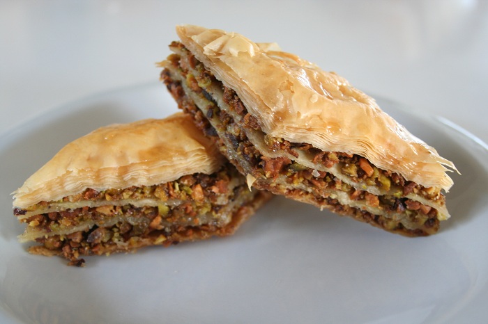 One of his favorite desserts is Baklava. He loves the crispy, buttery layers of phylo as well as the chopped nuts.